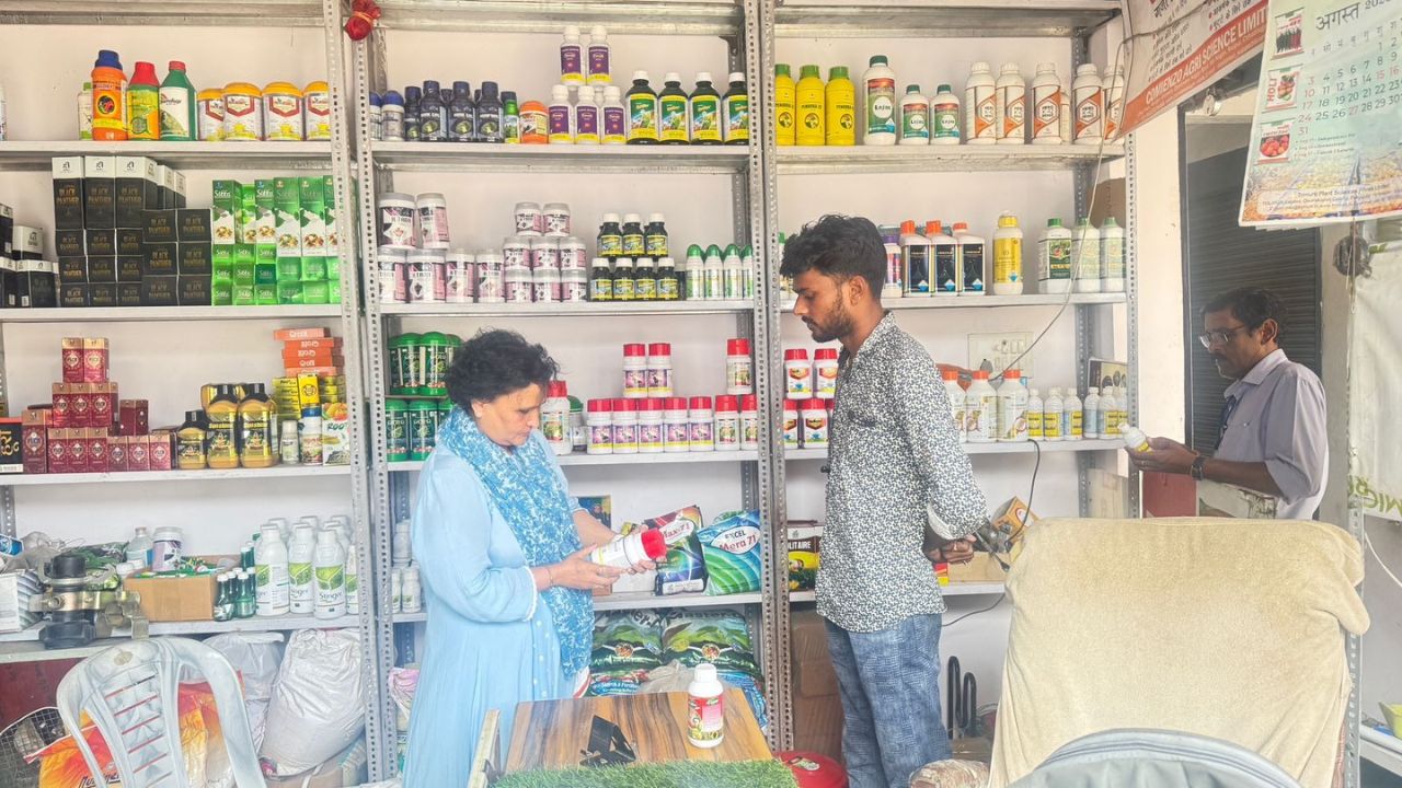 दुकानों का निरीक्षण करती हुईं कृषि अधिकारी डॉ. इंदिरा त्रिपाठी (Photo Credit- MP Krishi Vibhag)