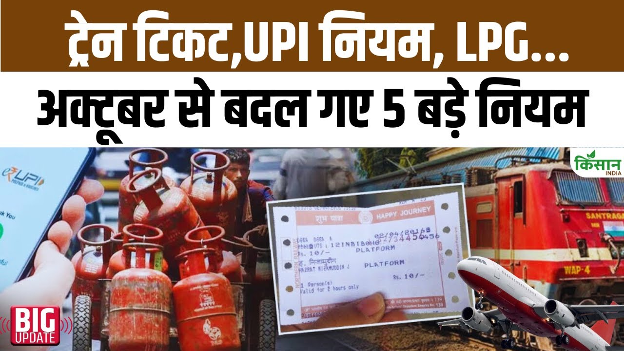 अक्टूबर 2025 का महीना शुरू होते ही आपके जेब और रोजमर्रा की जिंदगी से जुड़े कई बड़े बदलाव लागू हो गए हैं. 1 अक्टूबर से कुछ नियम और कीमतें बदल गई हैं, जिनका असर हर घर पर महसूस होगा या यूं कहें की आपकी जेब पर असर पड़ने वाला है. इस रिपोर्ट में हम आपको बताएंगे 5 बड़े बदलावों के बारे में, जो आम आदमी से लेकर यूपीआई यूजर्स और रेल यात्रियों तक को प्रभावित करेंगे. देखें इस वीडियो में क्या हैं ये बड़े बदलाव.