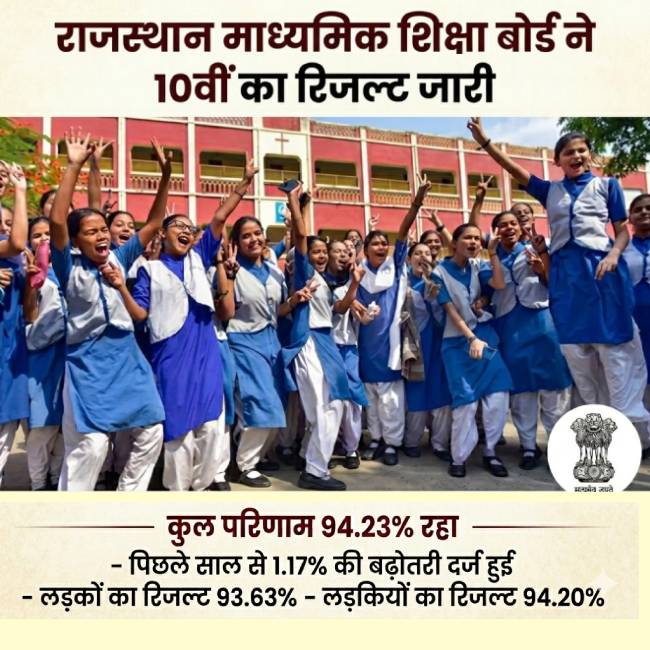 जारी हुआ माध्यमिक शिक्षा बोर्ड राजस्थान 10वीं का रिजल्ट